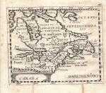 maps. Blank verso, longitude apparently east of Ferro. Scale: 1 inch = 215 miles. Size: 4 x 4.75 inches. |