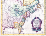 1771.2 (Eastern North America) An untitled map by Rigobert Bonne, which shows the full east coast through the Mississippi Valley and into the Plains. The northern portion of the Mississippi River extends to Lake Rouge. The Missouri River extends through 'Kanzez' to 'Ces Nations Sauvages'. The image here shows the northeast including Pennsylvania. State (or colony) boundaries are not shown, Philadelphia and Fort Duquesne are named. The map is untitled because it is the lower part of a two sheet map showing Canada and the United States. The title appears on the upper part: PARTIE DE L'AMERIQUE SEPTENTRIONALE, QUE COMPREND LE CANADA, LA LOUISIANE, LE LABRADOR, LE GROENLAND, LA NOUVELLE ANGLETERRE, LA FLORIDE &C. The map appeared in the Atlas Moderne and there were several subsequent versions, see McCorkle #771.2,773.2, 776.7, 777.5, 781.4; Sellers & van Ee #165. The 1777 German version is titled EIN THEIL DES MITTERNAECHTLICHEN AMERICA... and is on one sheet. There is a circa 1780 version with the title ETATS UNIS DE L'AMERIQUE across the top. Blank verso, longitude east from Paris. Scale: 1 inch = 160 miles. Size: 11.5 x 17 inches. |