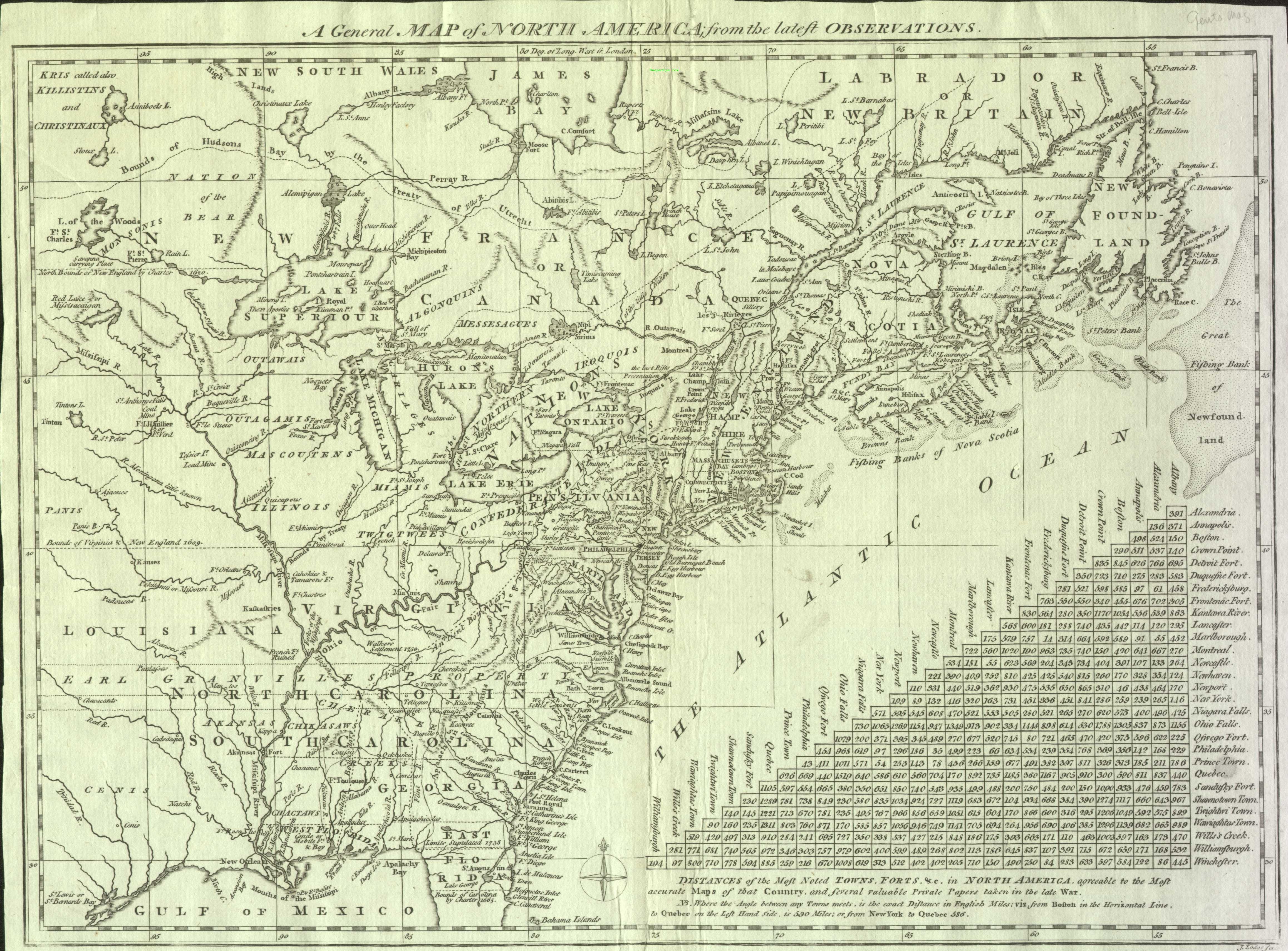 from Newfoundland to a cutoff Florida and west to the