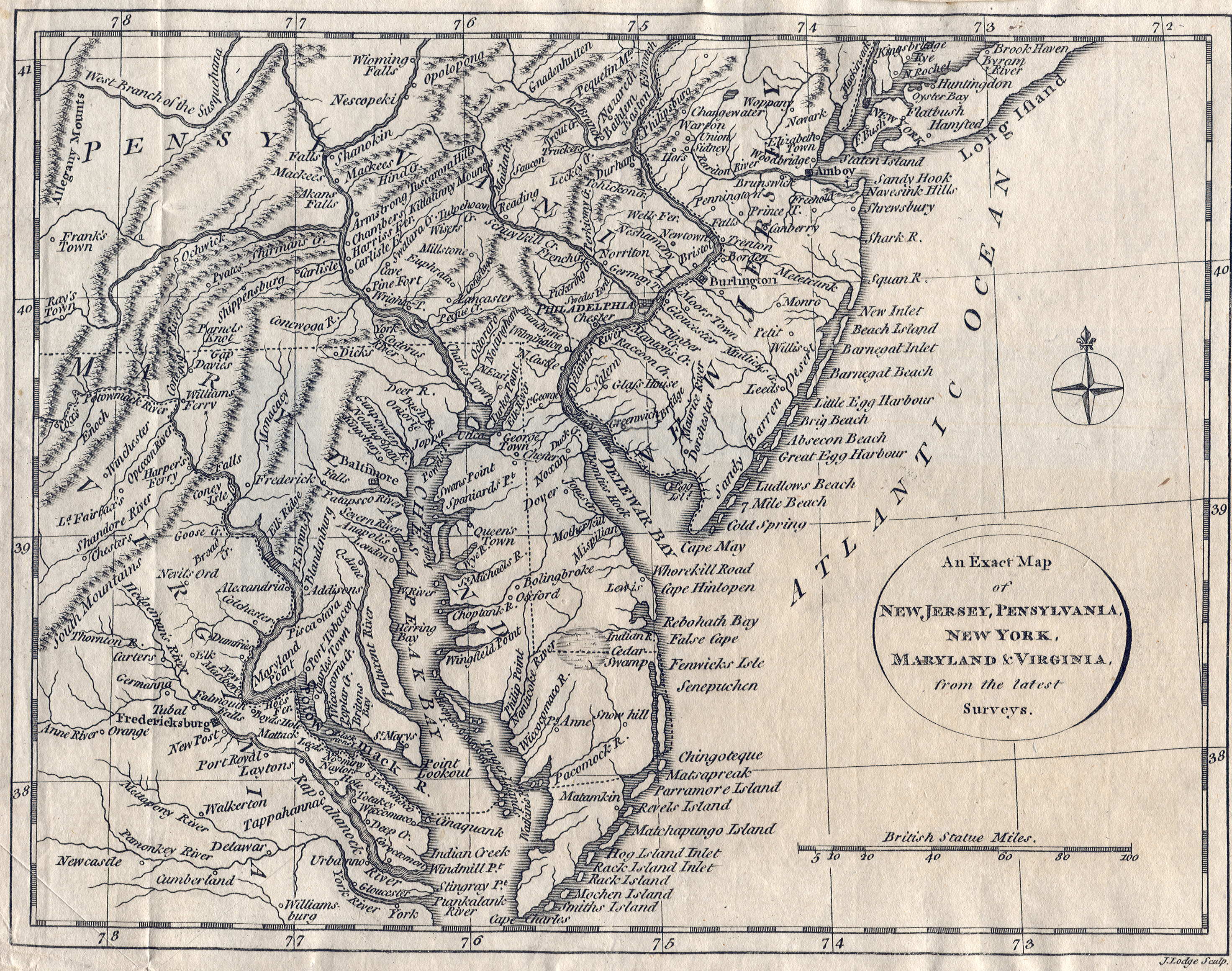 Delaware as a county. The east coast is shown in this
