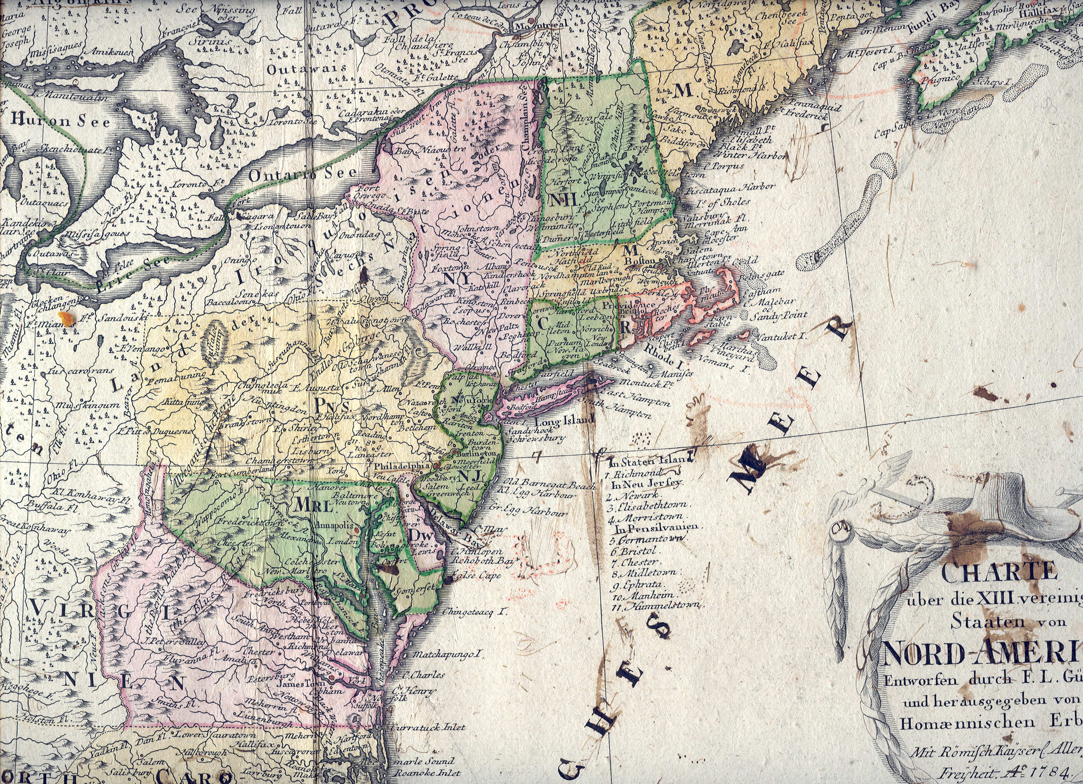 KARTE DES OESTLIECHE ODER EHEMAHLIGE ENGLISCHEN AMERIKA