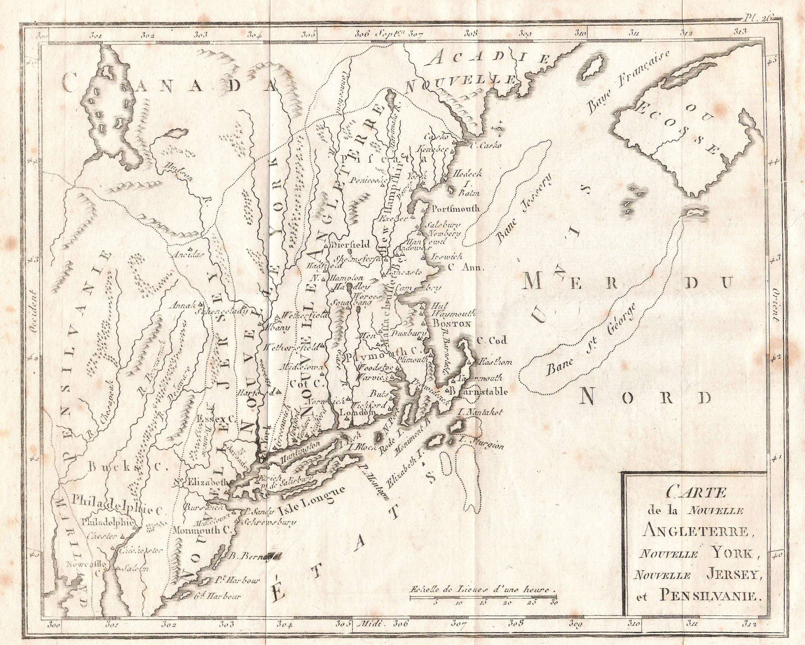 CARTE DE LA NOUVELLE ANGLETERRE, NOUVELLE YORK, NOUVELLE