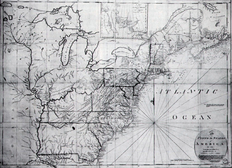 and sold by Laurie & Whittle. This map is a later issue of map 1756.10, a copy of the Lewis Evan's map, with the title changed to recognize the United States. There were several versions of that famous map issued, this apparently being the last.