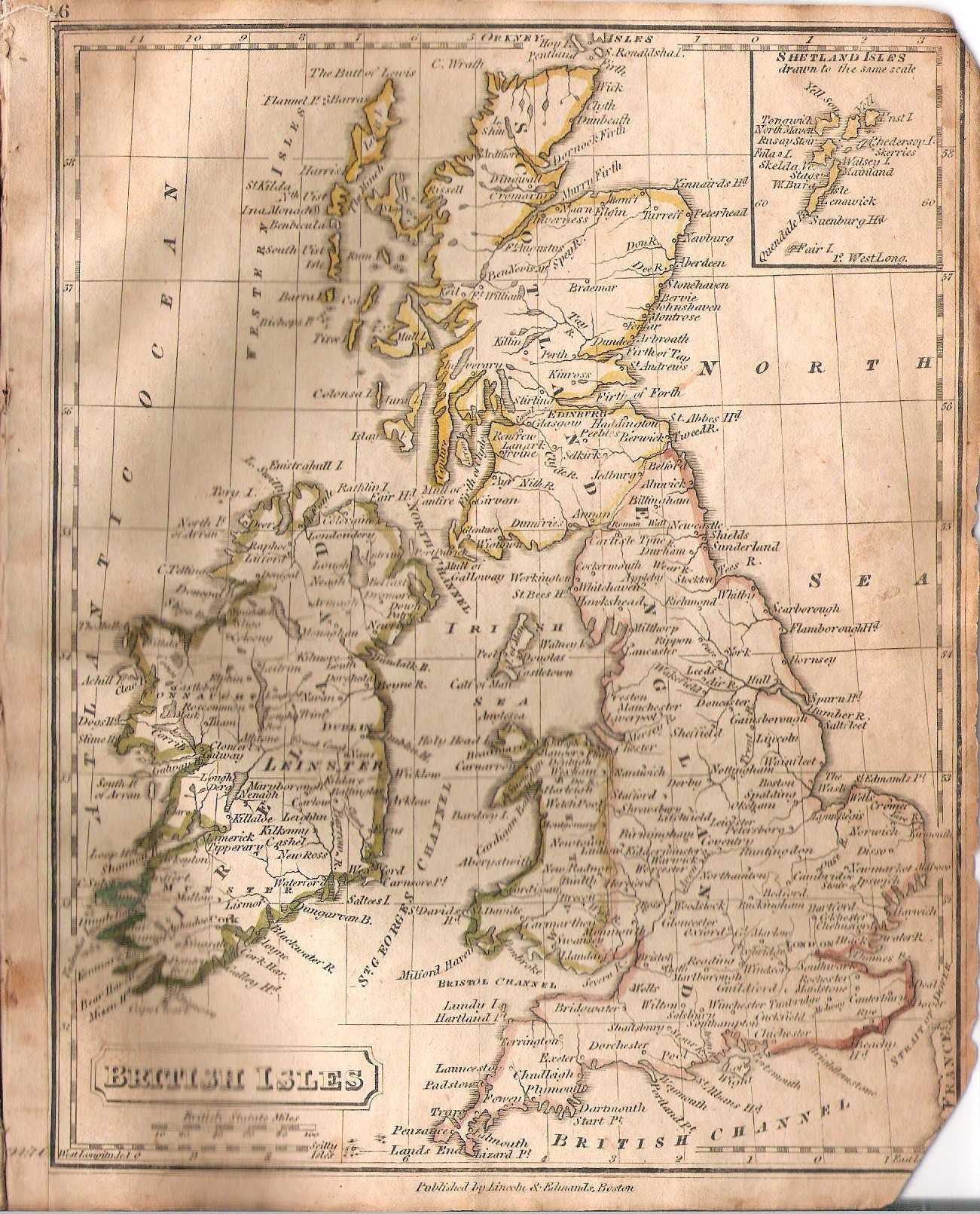 1822 A New Universal Atlas of the World; comprising, in twenty maps, carefully prepared, from the latest information, and neatly engraved, the World, its several grand divisions, and principle subdivisions. By Jedidiah Morse, D.D. and Sidney E. Morse, A.D. New Haven: Published by Howe & Spalding. 1822. This atlas has twenty engraved maps by N. & S.S. Jocelyn and A. Daggett. The United States map is double page and engraved by Annin & Smith, sc. Boston. This atlas is believed to be the one referred to in the geography above as it comes from the same publisher. Intaglio prints, marbled cover with no title. Size: 11 x 9.5 inches. |