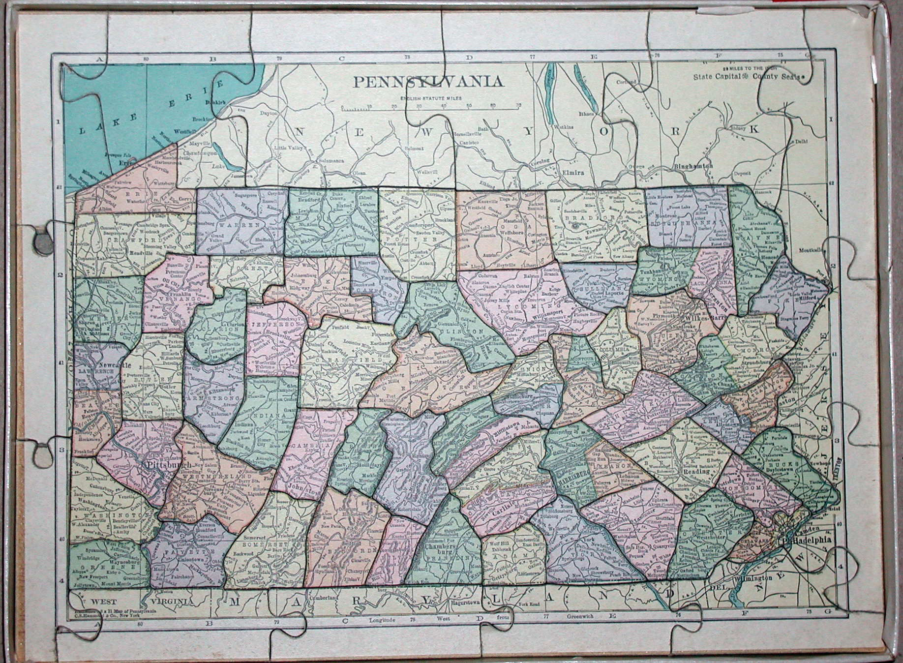 PENNSYLVANIA, a map puzzle with Hammond's standard map of