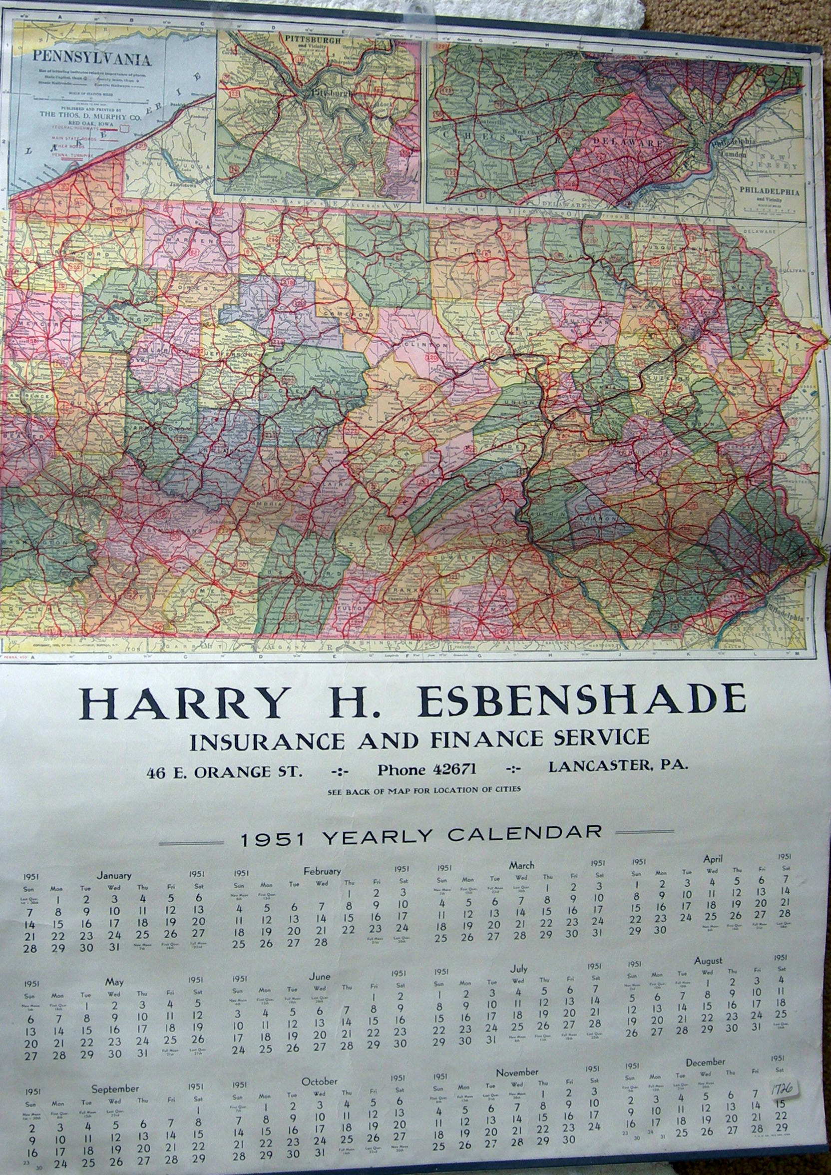 Philadelphia at the top. At the bottom is a 1951 calendar