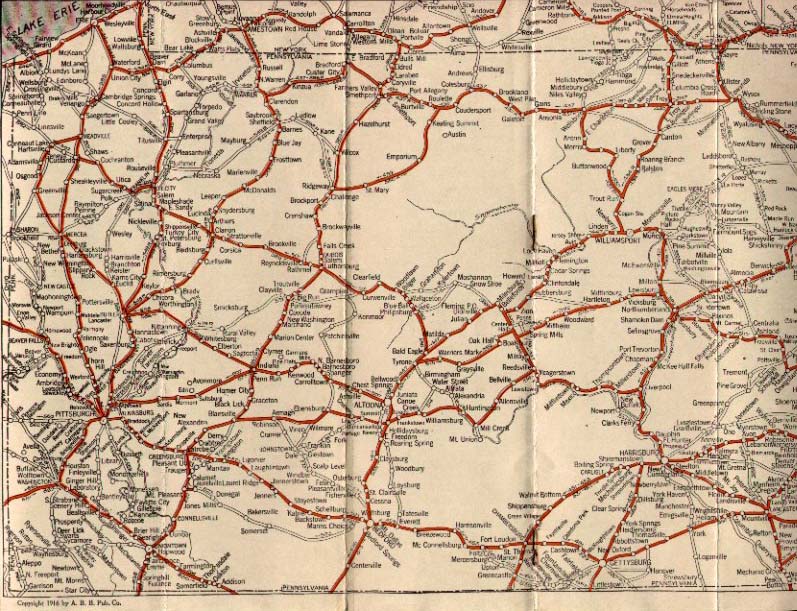 road map of Pennsylvania prior to the 1920's. The