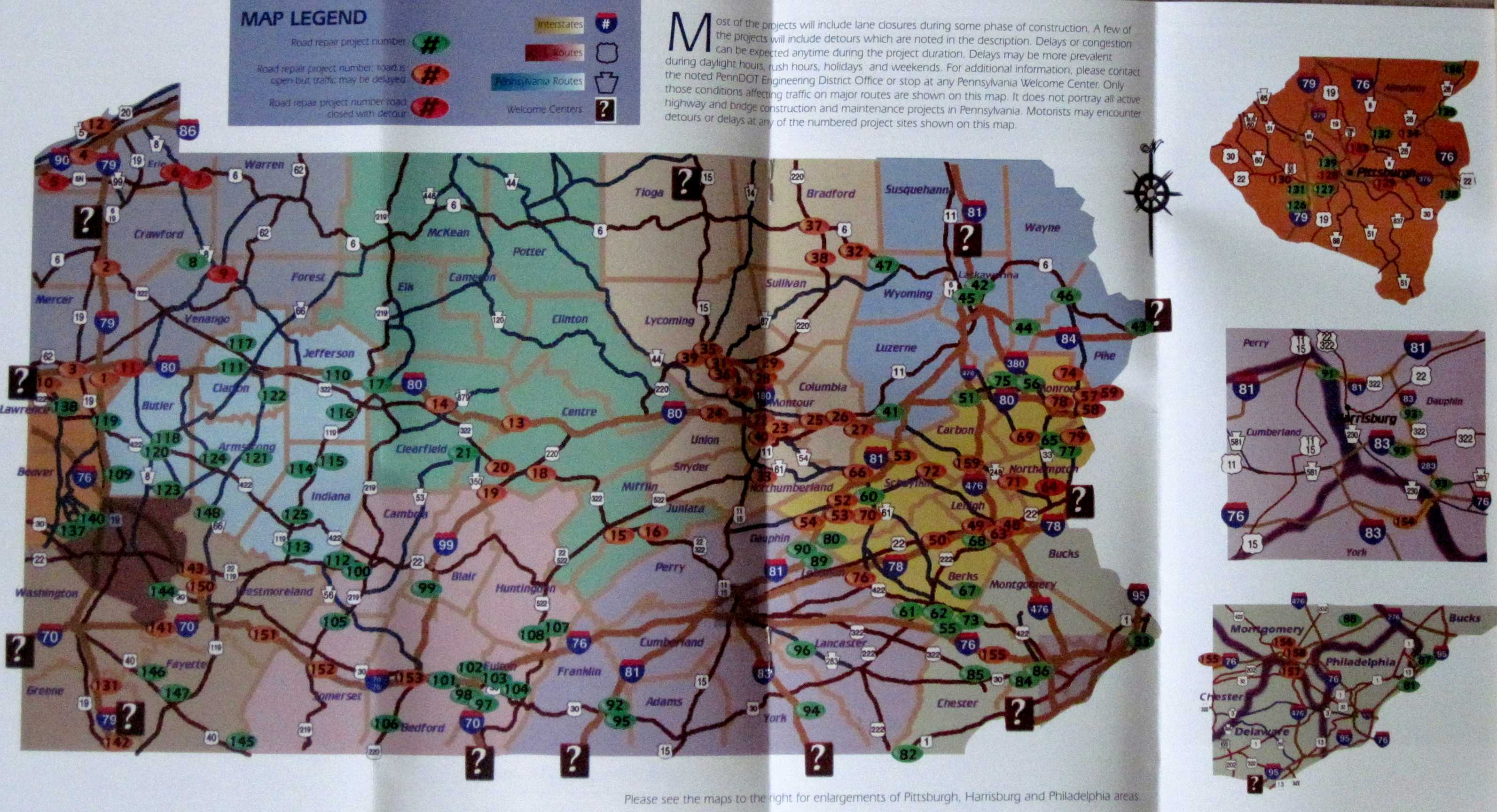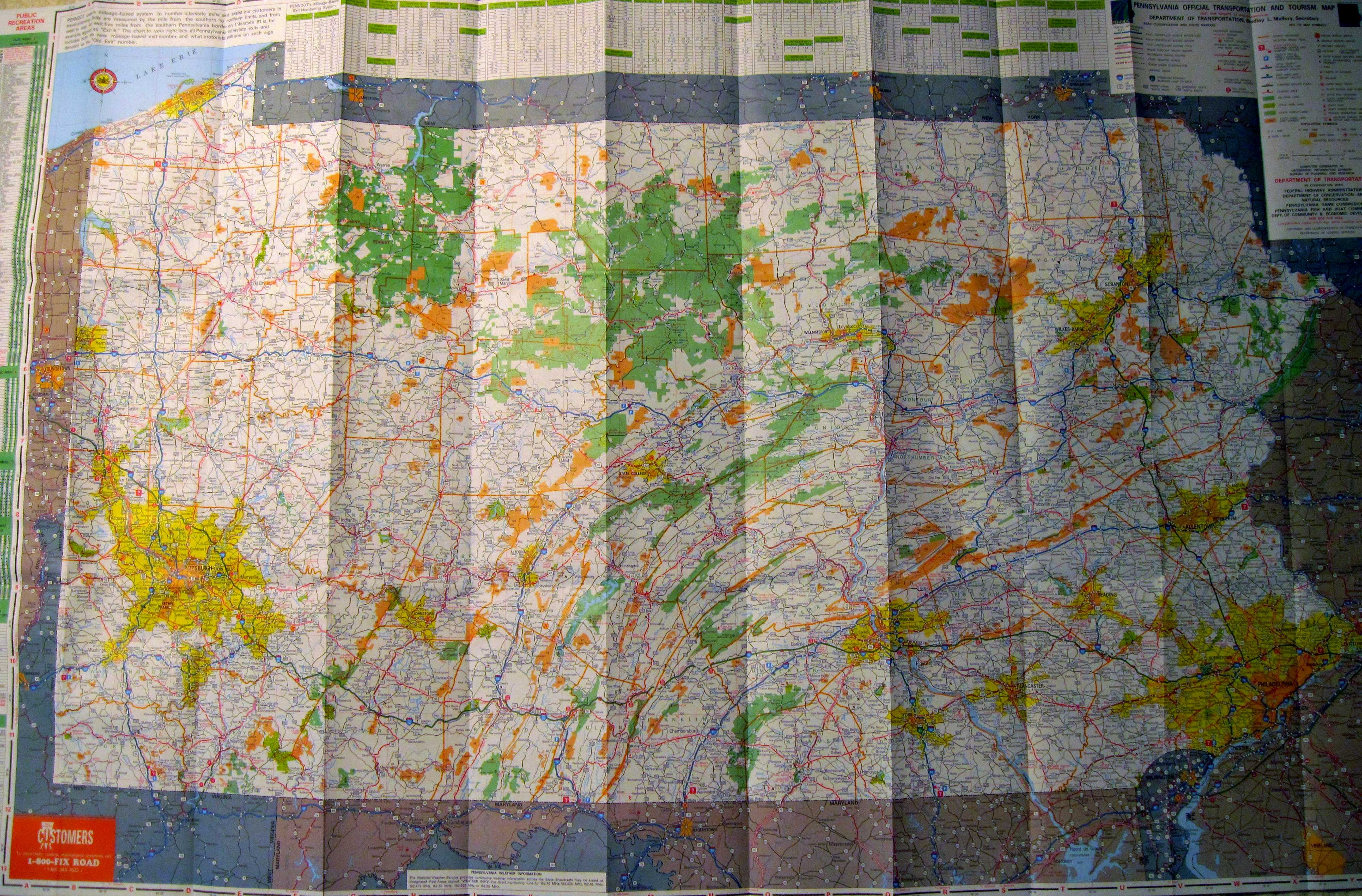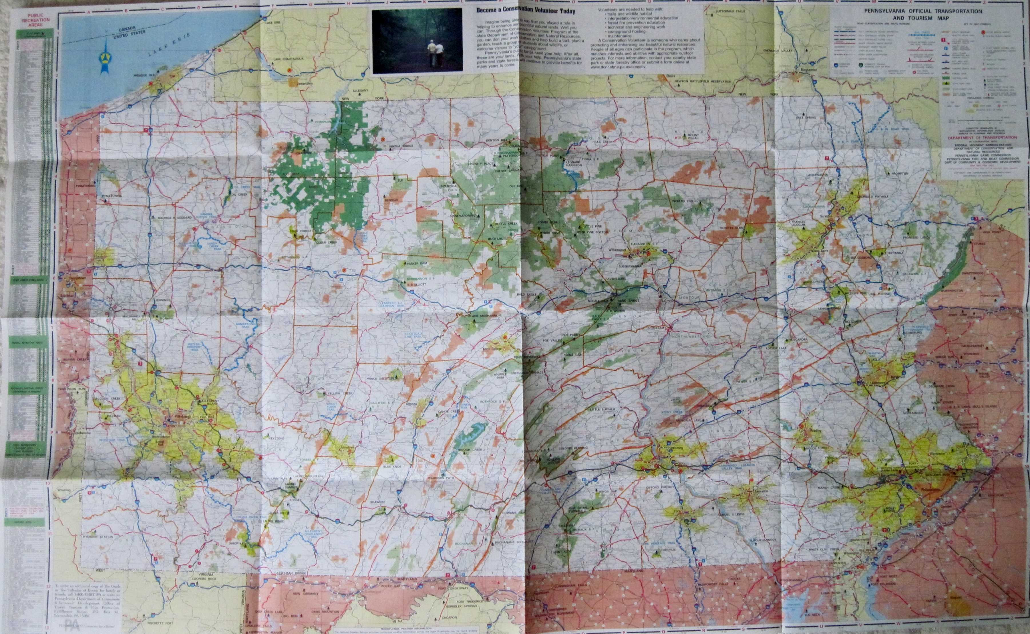 This map has the same image on the cover as the 2000 map, but the lettering on the front is slightly different. Also, on the verso is a new message from Governor Mark Schweiker, who took over after Tom Ridge resigned and decamped to Washington, D.C. to join the Bush cabinet. |